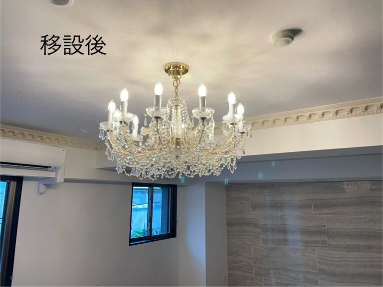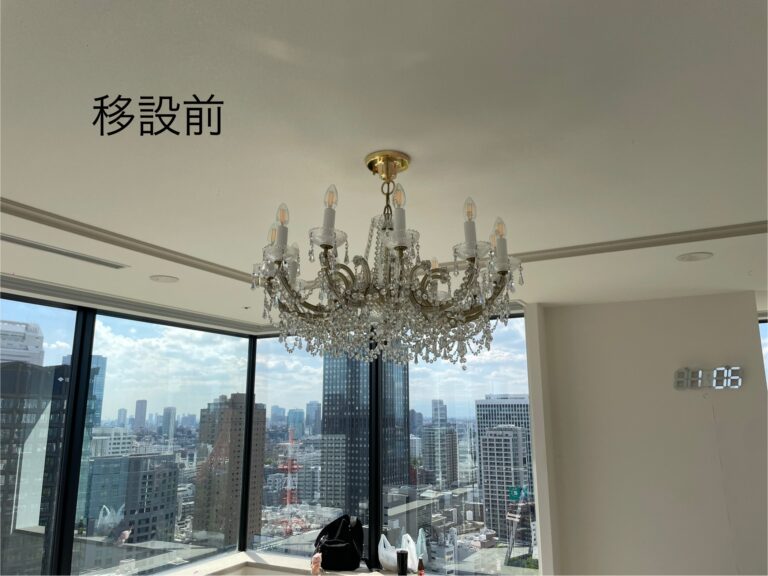 都内の超高級マンションに設置しているアンティークのクリスタルシャンデリアを、お引越しに合わせて移設してほしいというご依頼でした。お客様はお引越し当日にどうしてもシャンデリアの移設をご希望されており、即日で対応いたしました。