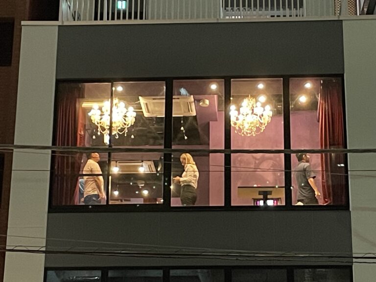 夜になると、六本木の大通りから店内のEMPIREシャンデリアが輝き、人々の目に止まります。