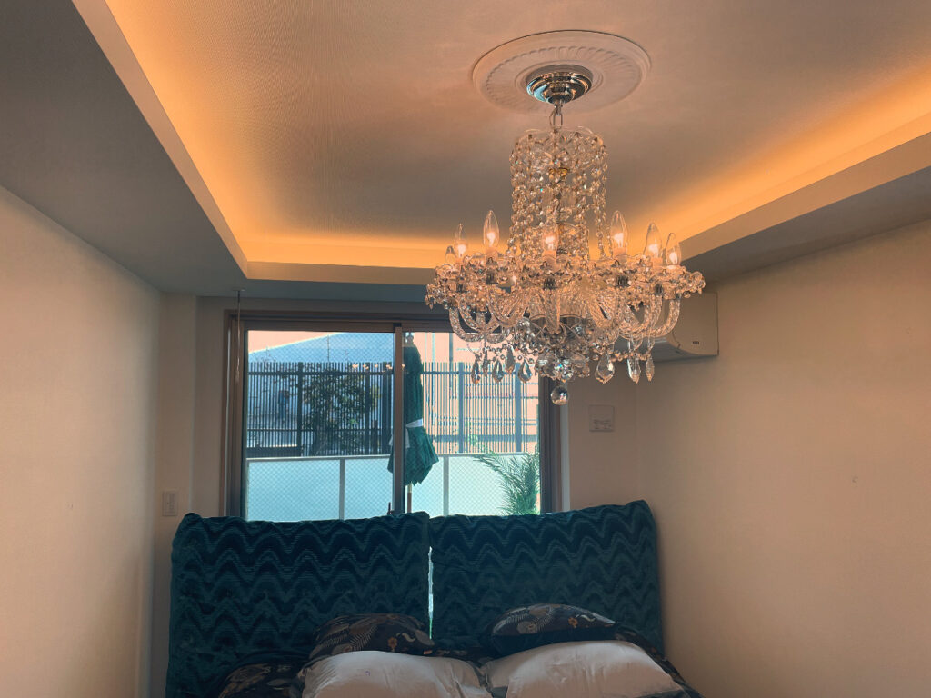 和室を美しく清く飾る「シャンデリア」との組み合わせ