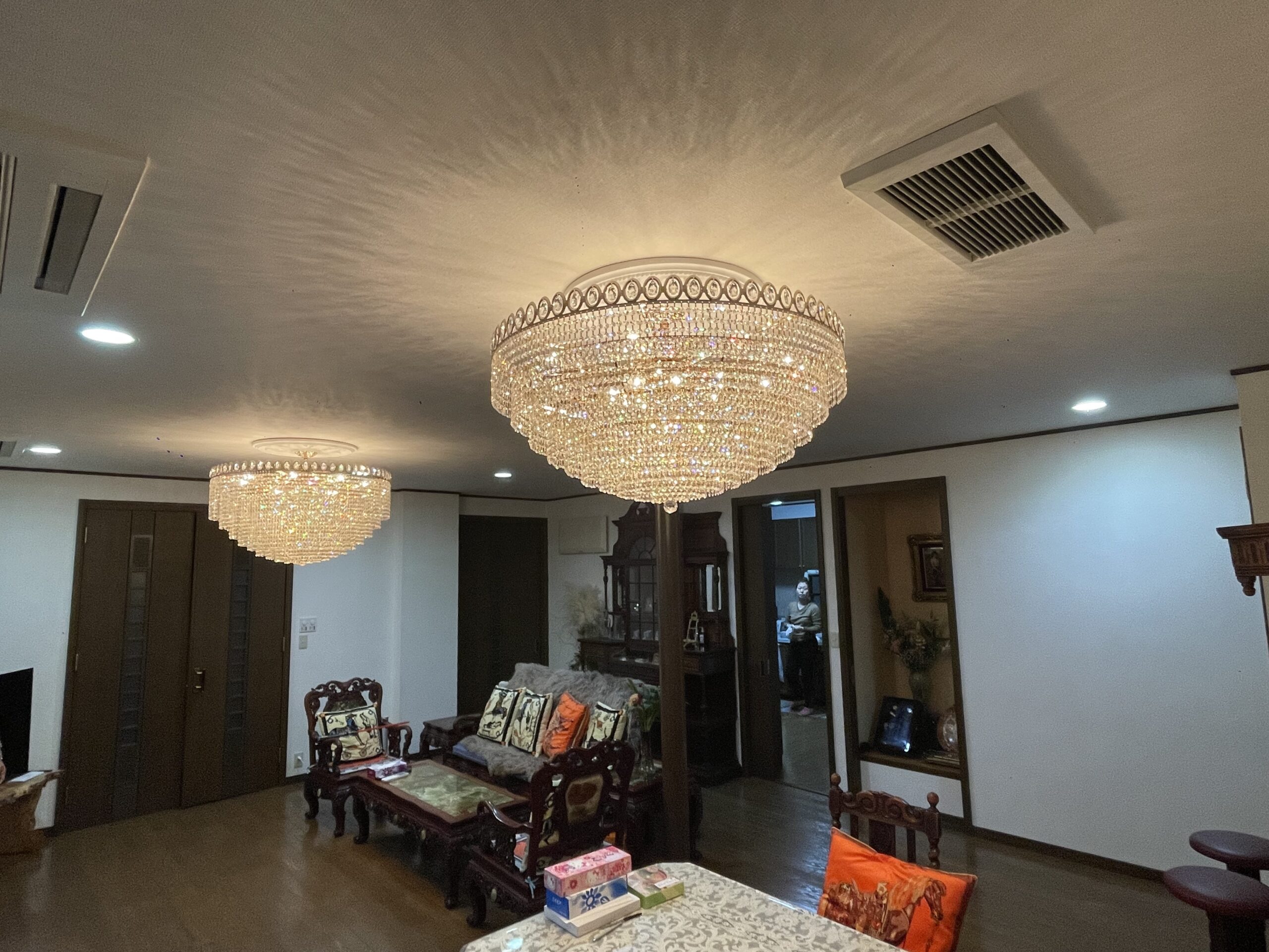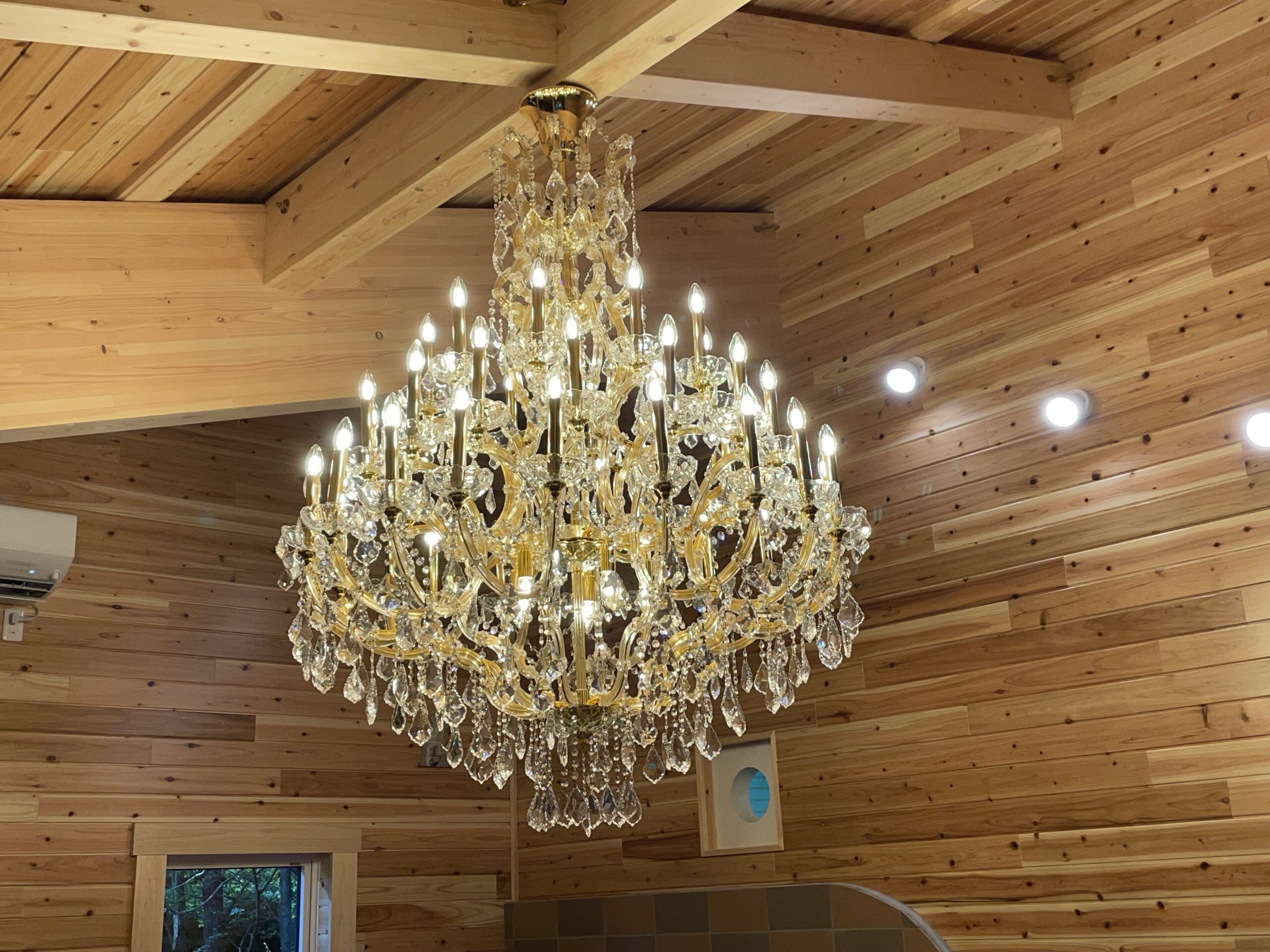 大きさのある華やかなシャンデリアは、別荘のように特別でリッチな場所にこそ取り付けをおすすめしております。