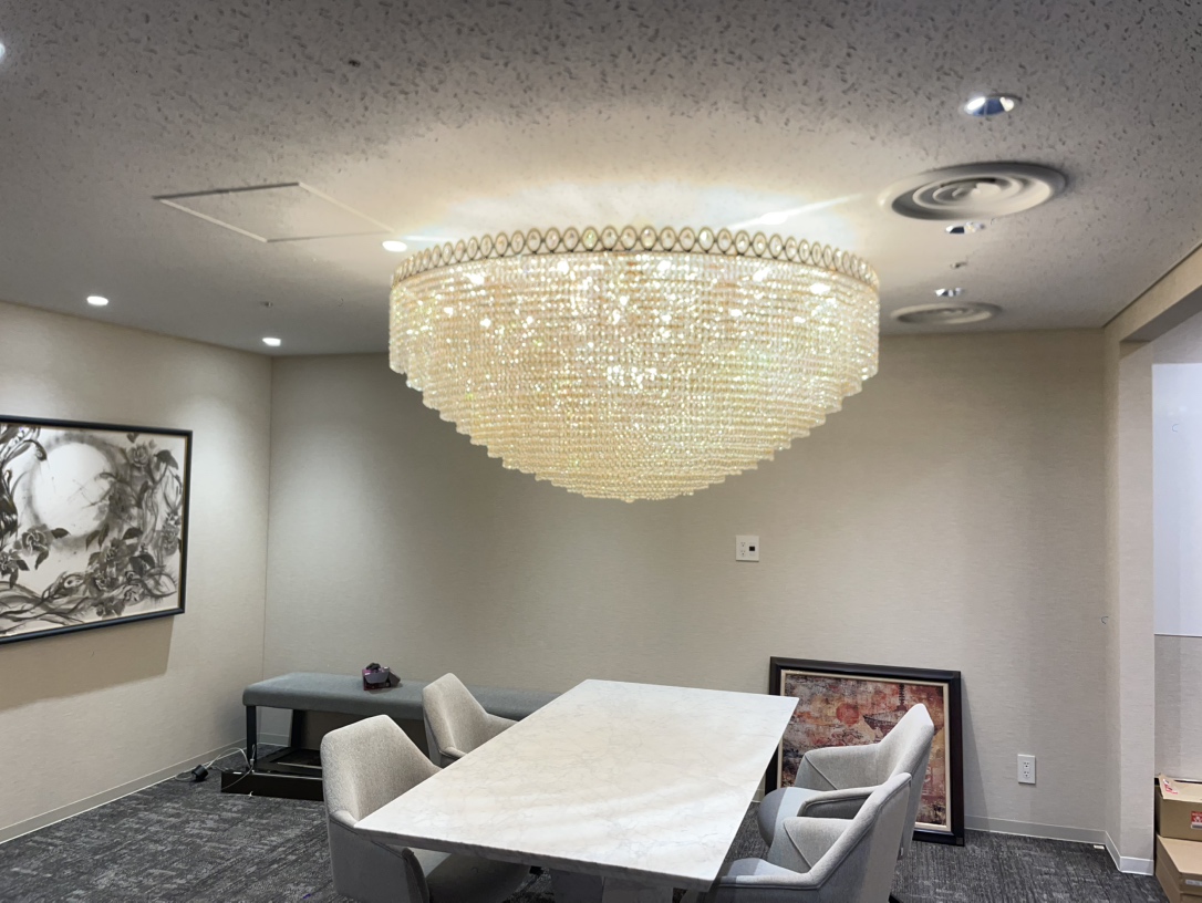 「クリスタルシャンデリアの美しさを一度この目で見てみたい!」というお客さまに堪能していただきたい輝きづくりをしておりますので、ご興味を持っていただいたお客さまはぜひホームページの「ショールーム」予約フォームよりお問い合わせくださいませ。