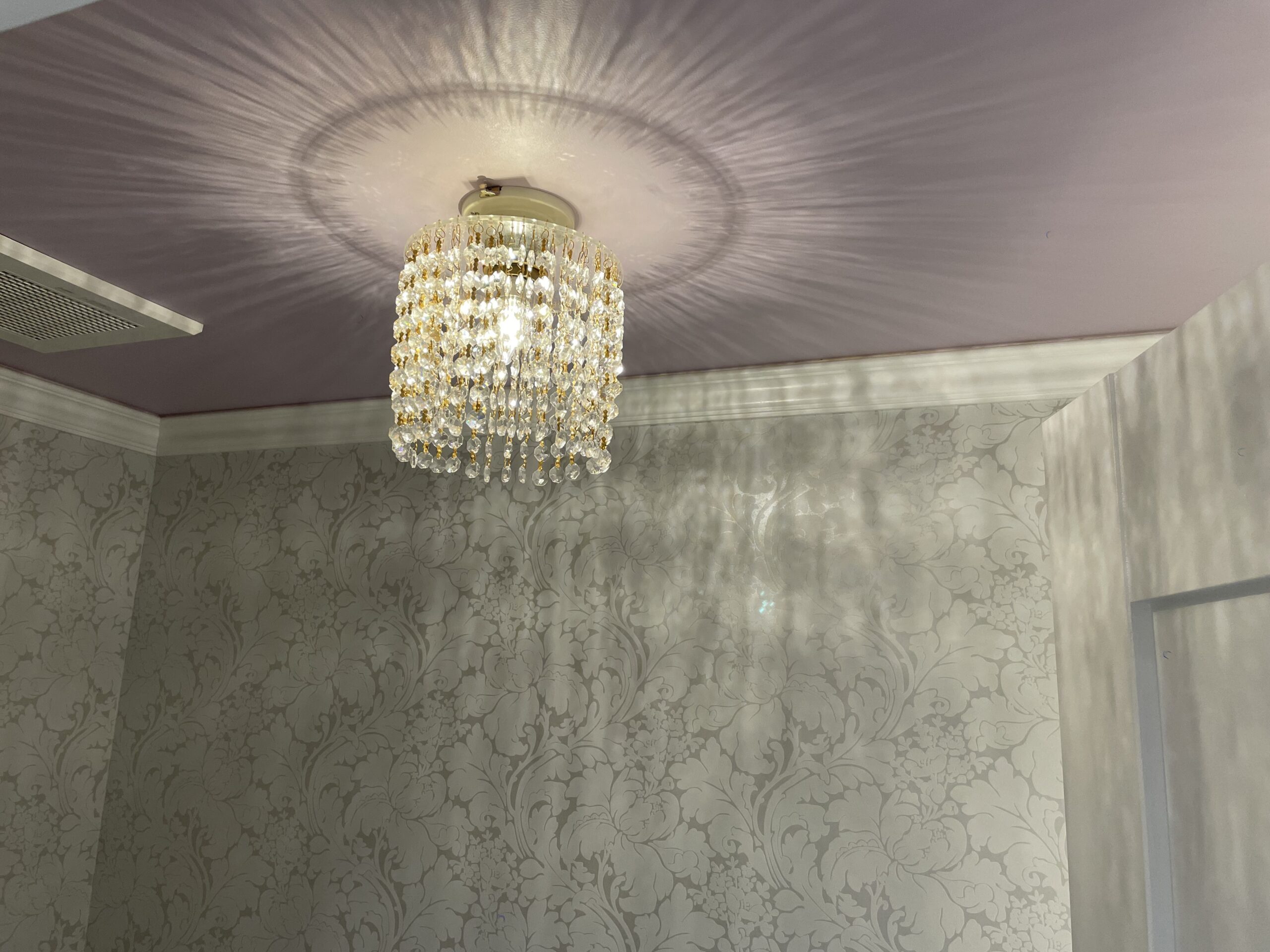 天井からの吊り下げ部分は短めに設計されていることも多く、シャンデリアの上部と天井の隙間がほとんど開かないケースもございます。